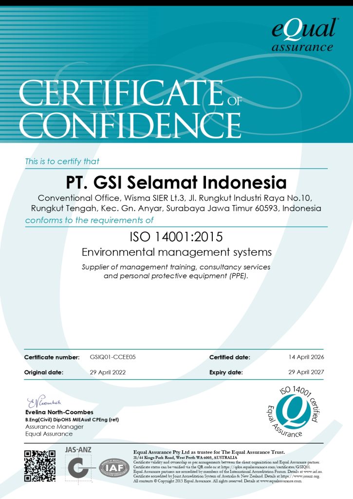 Perusahaan kami telah memiliki sertifikat ISO 14001:2015 Environmental Management Systems, ISO 9001:2015 Quality Management Systems, dan ISO 45001:2015 Occupational Health and Safety Management Systems dari Equal Assurance.