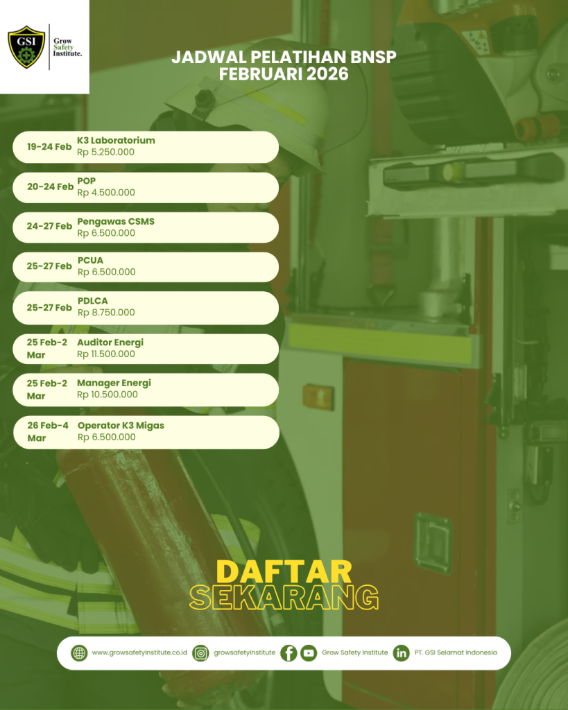 PT. GSI Selamat Indonesia (Grow Safety Institute) adalah perusahaan jasa pelatihan bidang K3 yang didirikan pada 7 Mei 2019.