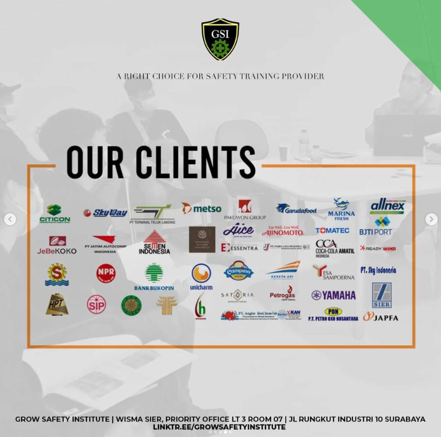 Grow Safety Institute dapat menjadi mitra yang tepat dan terpercaya dalam membantu perusahaan guna meningkatkan kualitas SDM di bidang Keselamatan dan Kesehatan Kerja (K3) agar lebih menjadi lebih produktif dan efisien.